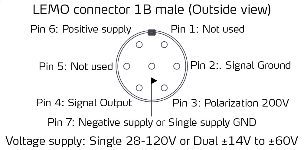 7-pin LEMO 1B male (ext. view)