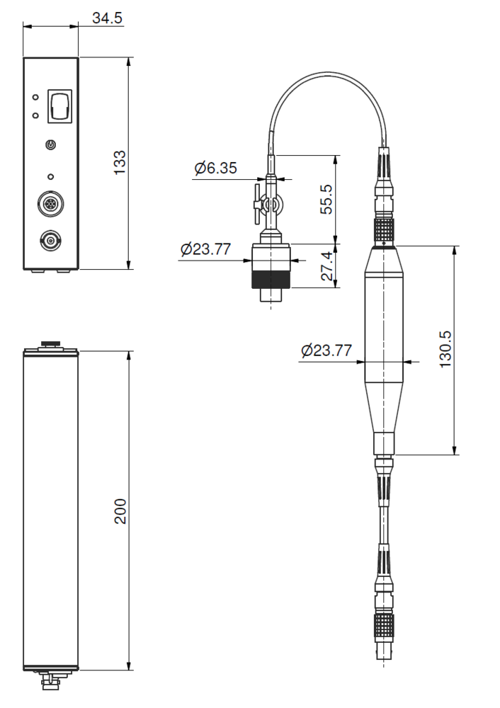 The 40HT Low-noise Microphone System comprises the 40AH ½” Ext. Polarized Pressure Microphone, which has a specially reduced inherent noise floor, and the 26HG ¼” Preamplifier. The 26HG is similar to the GRAS 26AC ¼” Standard Preamplifier with 3 m integrated cable, but with a 40 GΩ input impedance to enable low-level noise measurements. It has an integrated lightweight cable terminated in a 7-pin LEMO connector that plugs into the 26HT Gain and Filter Unit.