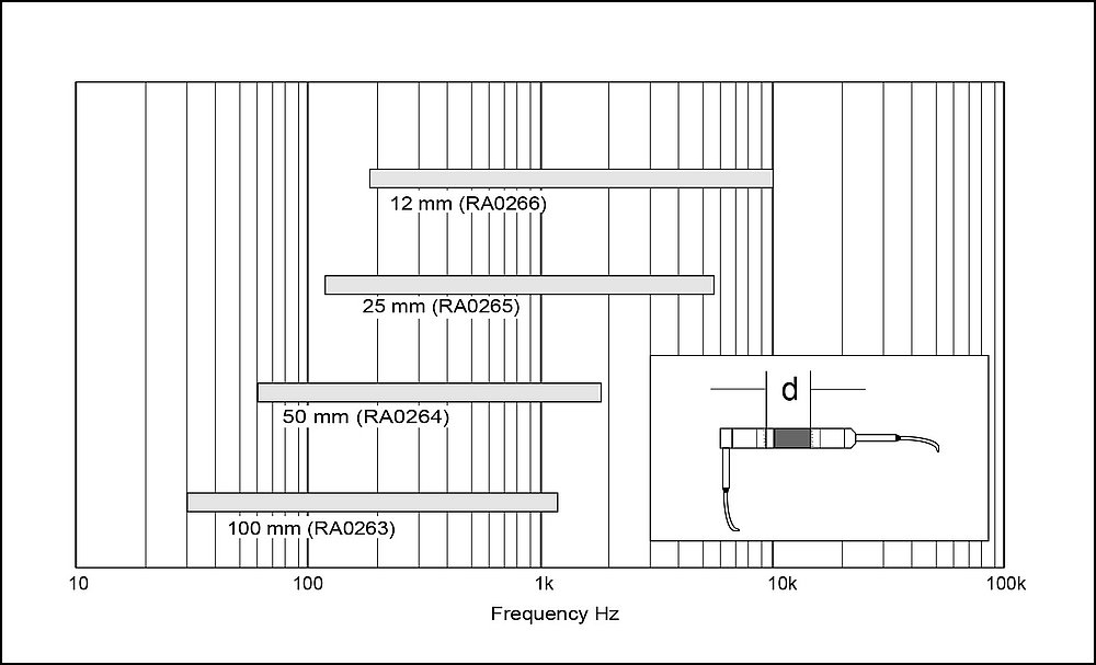 The microphones are high sensitivity, free-field 1/2-inch condenser microphones with a uniquely designed pressure equalisation system which ensures extremely well defined phase characteristics. The microphones and preamplifiers are mounted on a swivel head on the telescopic arm of the Remote control handle. To cover the full frequency range from 50 Hz to 10 kHz, the 50AI probes are delivered with four solid spacers for spacing the microphones at 12 mm, 25 mm, 50 mm and 100 mm. These spacers can be easily interchanged without dismantling the probe.
