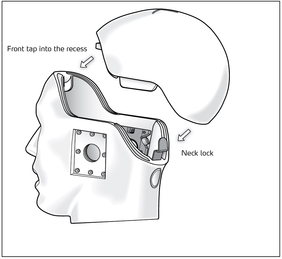 Có thể dễ dàng tiếp cận phần bên trong đầu của KEMAR bằng cách nhấn một nút và nâng phần da đầu lên.