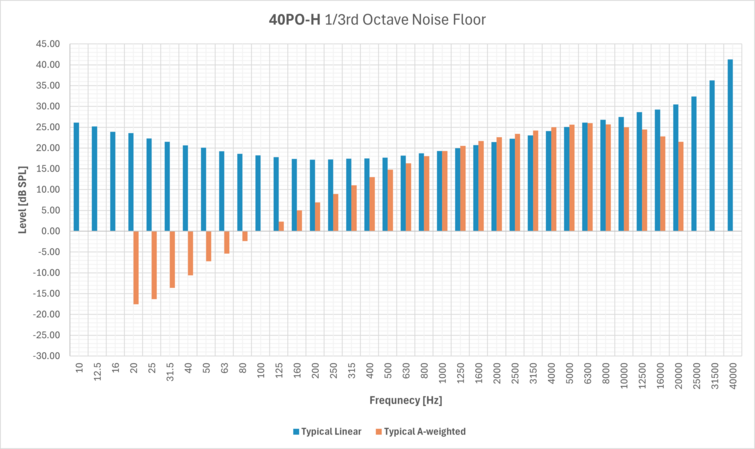 Được tối ưu hóa cho việc đo mức áp suất âm thanh cao nhờ độ nhạy thấp, 40PO-H hoạt động xuất sắc trong môi trường khắc nghiệt. Đối với các ứng dụng yêu cầu đo mức áp suất âm thanh thấp hơn, có sẵn GRAS 40PO-L, cung cấp độ nhạy cao hơn và độ nhiễu nền thấp.
