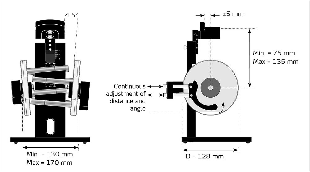 • Chiều cao của giá đỡ băng đô có thể điều chỉnh từ 75 đến 135 mm.