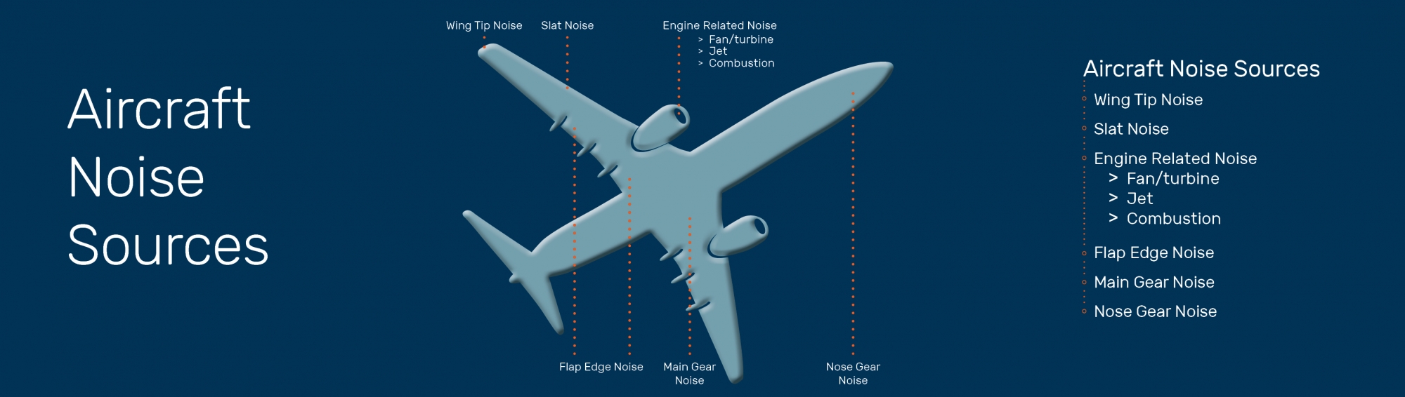 Aeroacoustics là một yếu tố thiết yếu trong thiết kế, chứng nhận và vận hành các phương tiện hàng không vũ trụ. Các nguồn tiếng ồn gió điển hình được minh họa bên dưới.