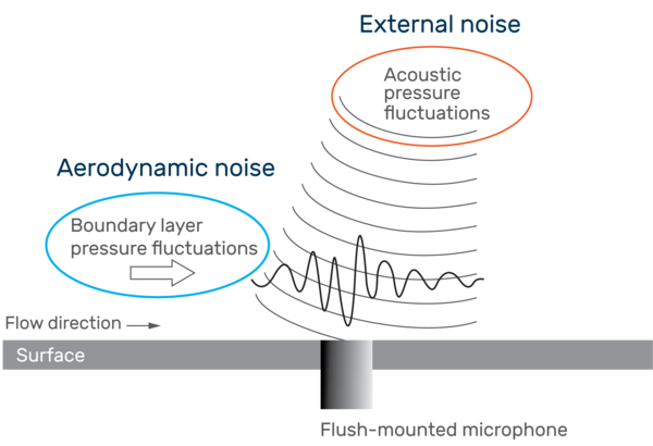 Trọng tâm chính của các thử nghiệm tiếng ồn gió trong ngành hàng không vũ trụ là các phép đo trong lớp biên. Trong lĩnh vực này, loại đo lường này ngày càng trở nên quan trọng. Mục tiêu chính là tách biệt tín hiệu âm thanh khỏi tiếng ồn nhiễu động do dòng chảy gây ra. Các mục đích bao gồm: định lượng công suất âm thanh phát ra từ cấu trúc, xác định vị trí nguồn âm thanh bằng cách sử dụng mảng micro, và đo lường ứng suất nhiễu động mà cấu trúc phải chịu.